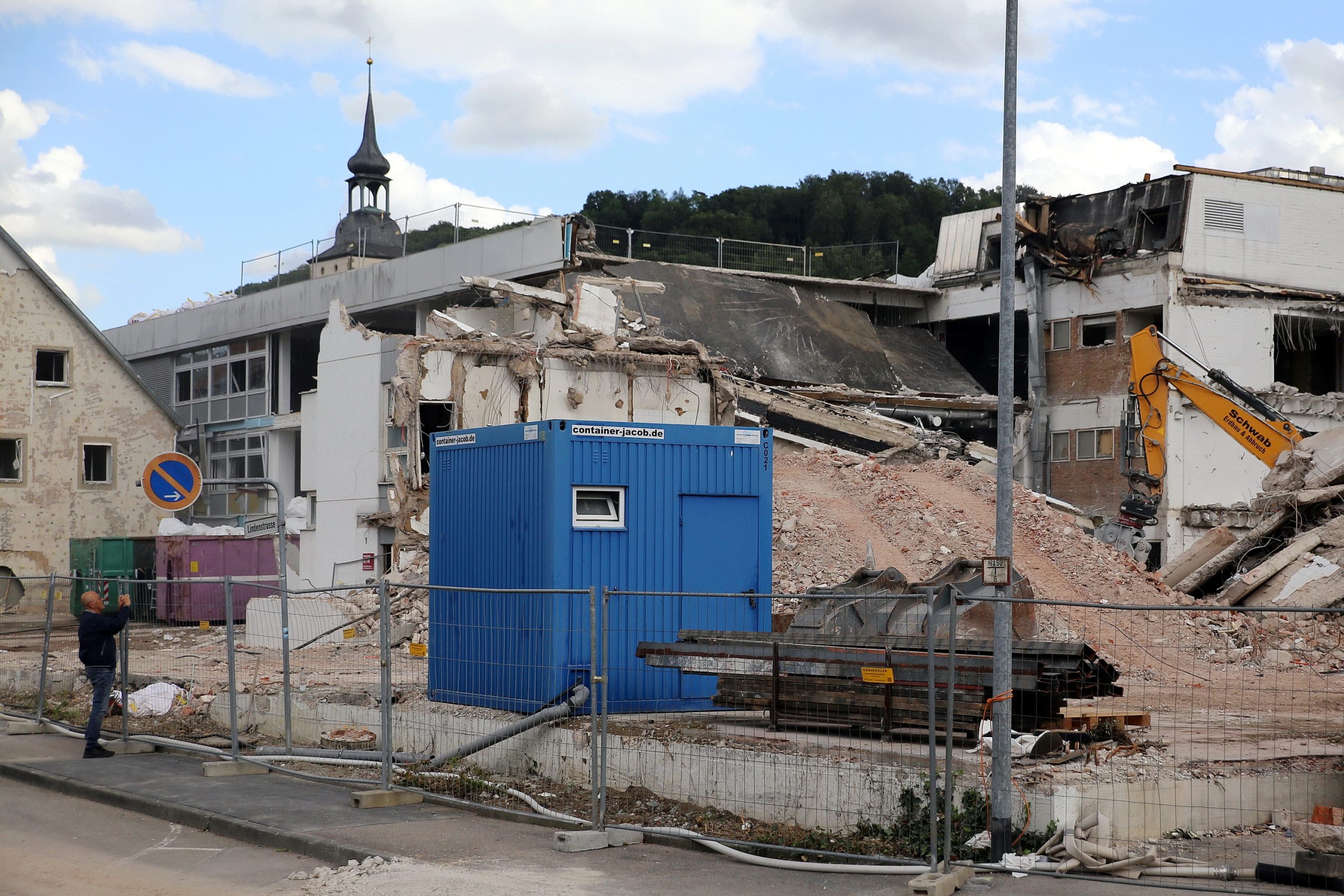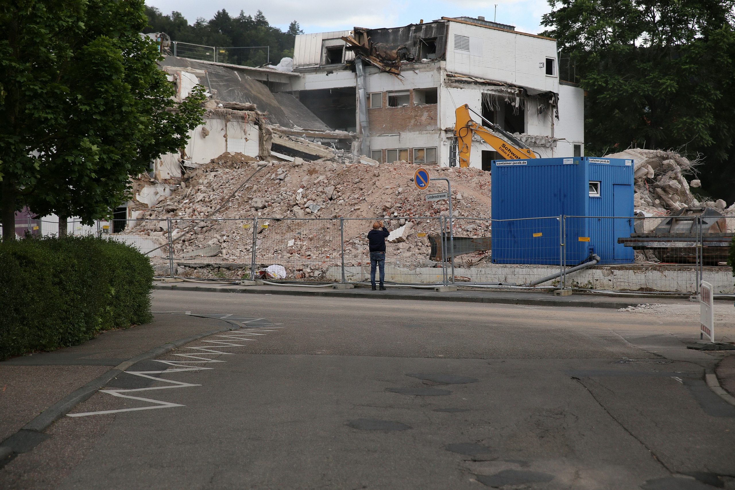 Heiner Sefranke schaut beim Abriss seines ehemaligen Mustang-Gebäudes zu und macht selbst auch ein paar Erinnerungsfotos. Foto: GSCHWÄTZ