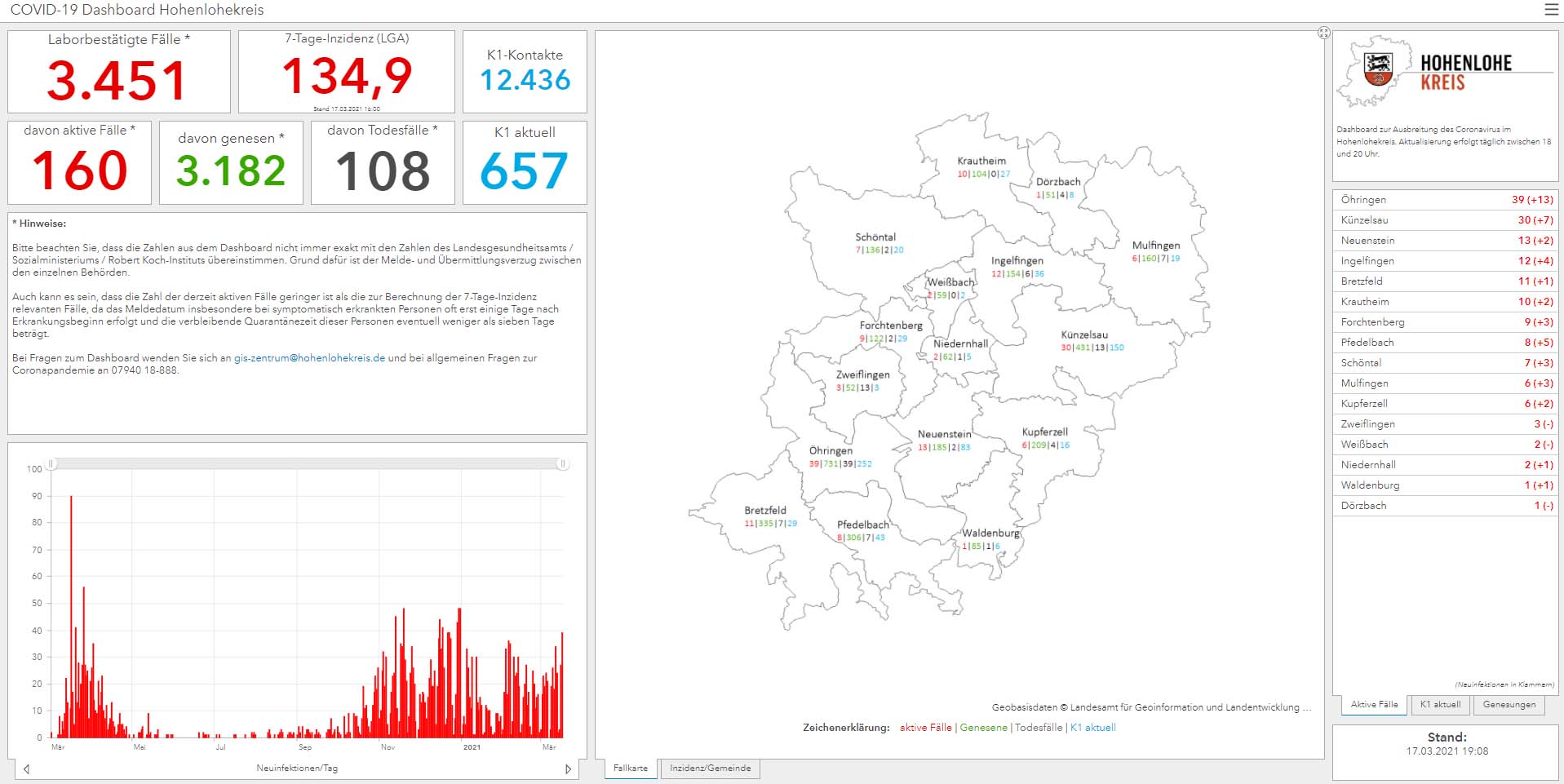 Landrat Dr. Matthias Neth erklärt dazu: „Gerade wir im Hohenlohekreis konnten in den vergangenen Tagen und Wochen sehen, wie dynamisch das Infektionsgeschehen sein kann. Wir hatten eine kurze Zeit mit einem sehr niedrigen Inzidenzwert, nun liegen wir wieder weit entfernt von einem Wert, der eine Lockerung der Maßnahmen rechtfertigen würde. Wir haben inzwischen unterschiedliche Infektionsquellen, sodass ein diffuses und über größere Teile des Landkreises verstreutes Infektionsgeschehen vorliegt. Zudem ist die weit ansteckendere Virusvariante B.1.1.7 gleich mehrfach im Landkreis nachgewiesen.“