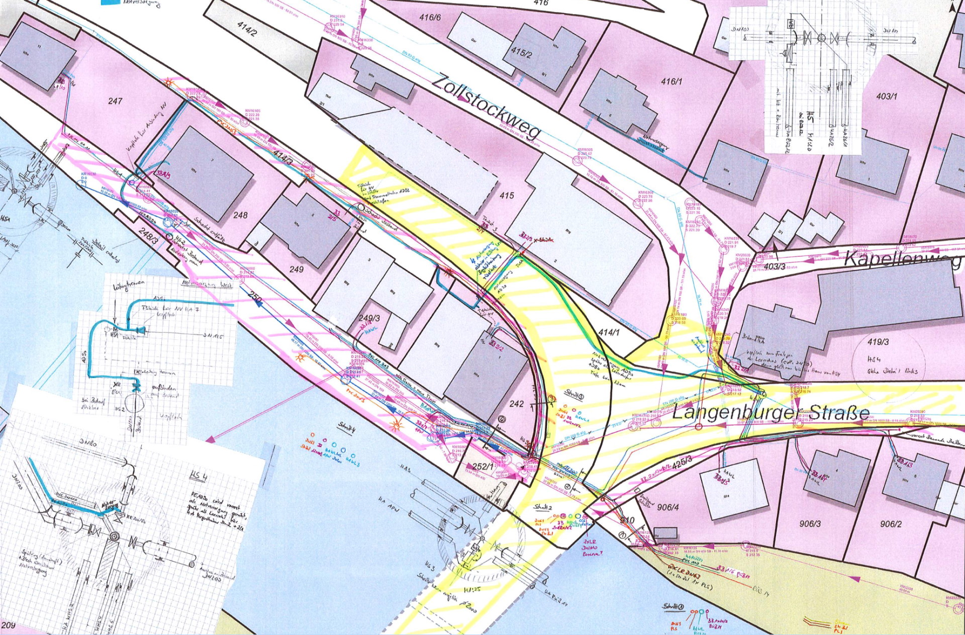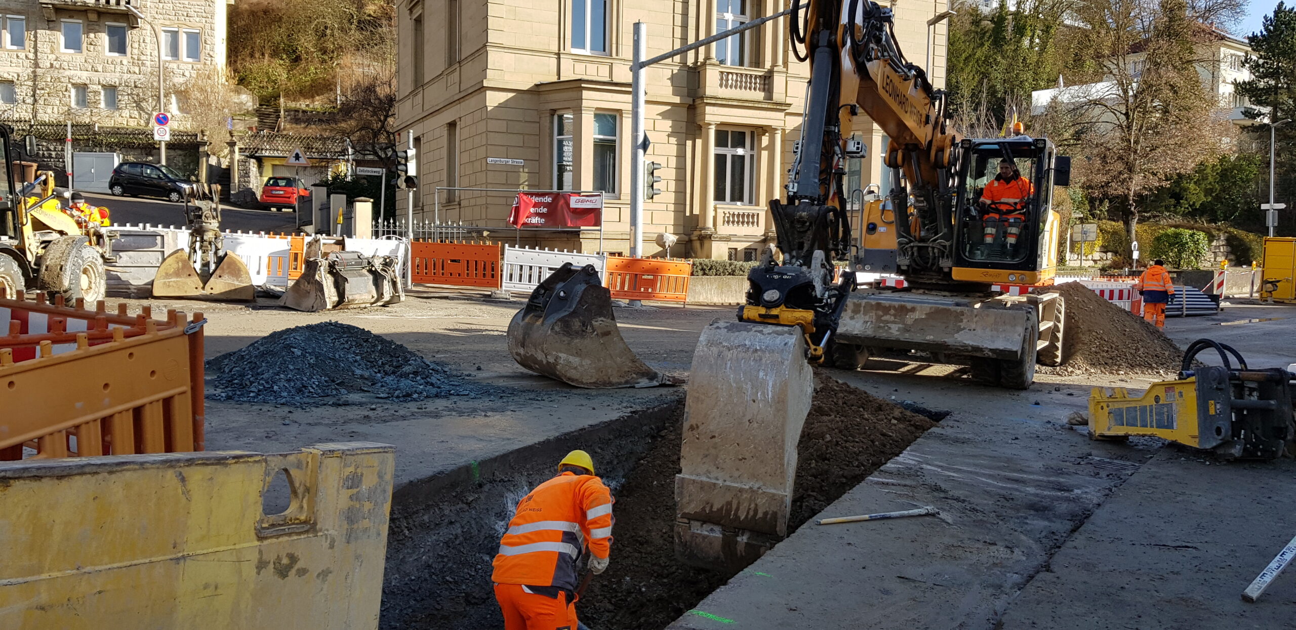 Aktuell erfolgt der Anschluss der beiden Mischwassersammler Zollstockweg und Langenburger Straße an das Regenüberlaufbecken neben der Kocherbrücke. Auch eine Trinkwassernotversorgung wird gerade vorbereitet. Diese wird gebraucht, wenn die Trinkwasserleitungen einschließlich der Hausanschlüsse innerhalb des Kreuzungsbereiches erneuert werden. Sobald diese Leitungen überdeckt sind, werden noch die Leerrohre für das städtische Breitbandnetz, für die Straßenbeleuchtung und die Stromversorgung des Parkleitsystems verlegt. Parallel hierzu verlegen die Netze BW noch Hausanschlüsse für Strom und Gas. Zu guter Letzt werden dann die Oberflächen wiederhergestellt.