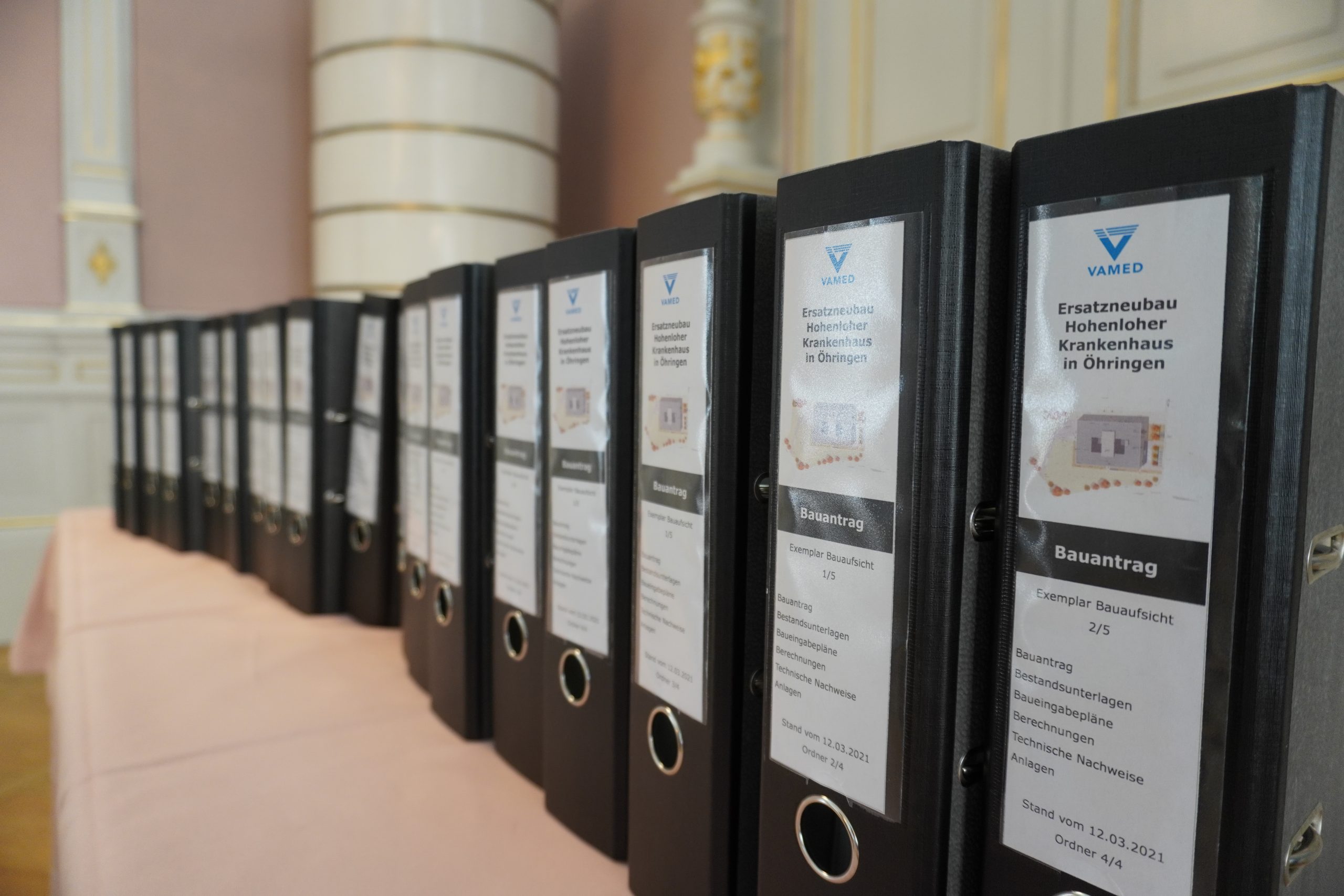 30 Aktenordner umfasst das Baugesucht. Foto: BBT-Gruppe / Landratsamt des Hohenlohekreises / Stadt Öhringen