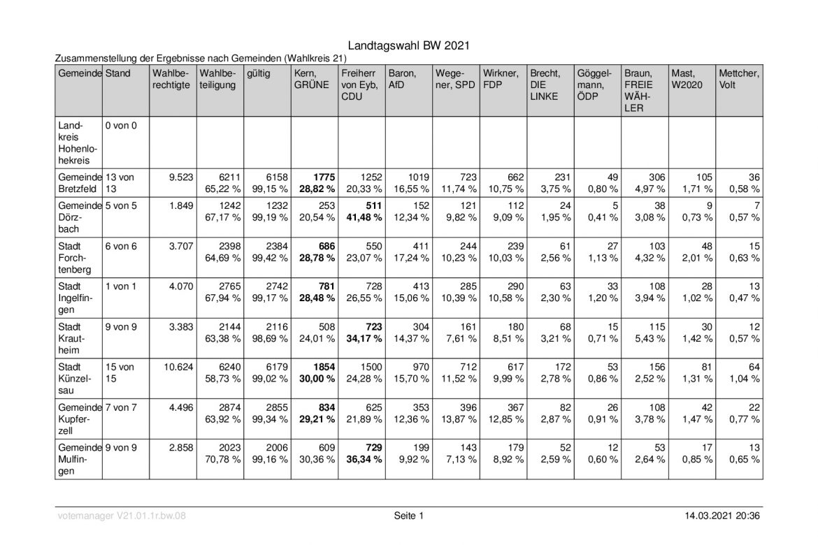 So hat der Hohenlohekreis in den einzelnen Städten und Gemeinden gewählt. Rund 38 Prozent der Bürger machten von ihrem Wahlrecht keinen Gebrauch.