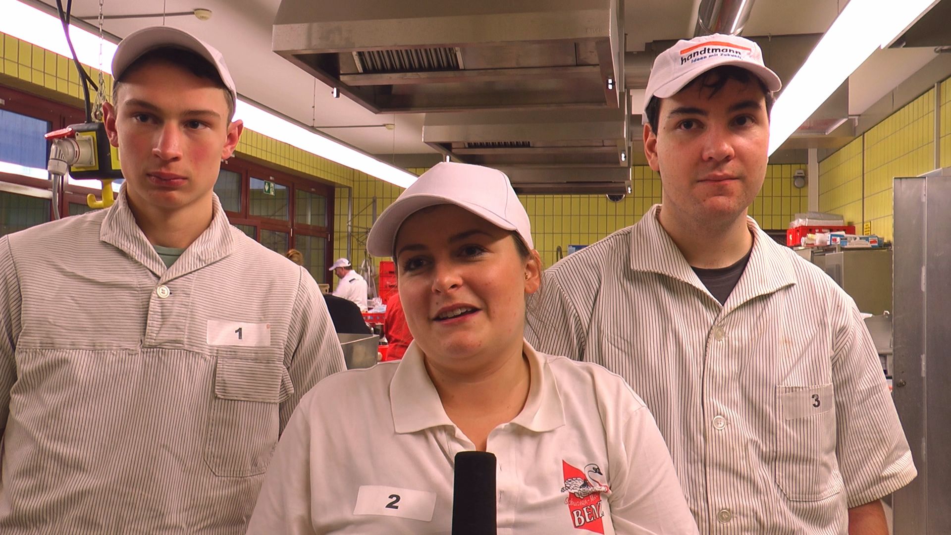 Es nahmen insgesamt acht Teilnehmer am Wettbewerb des Landesinnungsverbandes des Fleischerhandwerks in Künzelsau teil. Die Sieger Gina Benz (Fleischer) und Anna-Lena Schlegel (Fleischereifachverkäufer) haben sich für die deutsche Nationalmannschaft qualifiziert, die widerum an internationalen Wettbewerben teilnimmt, wo es dann natürlich auch richtig um die Wurst geht. Videoreporter Felix Kribus hat die Chance ergriffen, die hoffnungsvollen Nachwuchstalente unter anderem zu fragen, warum für sie Metzger ein erstrebenswerter Beruf ist, der heutzutage viel mehr offeriert, als lediglich große Fleischstücke in Streifen zu schneiden.