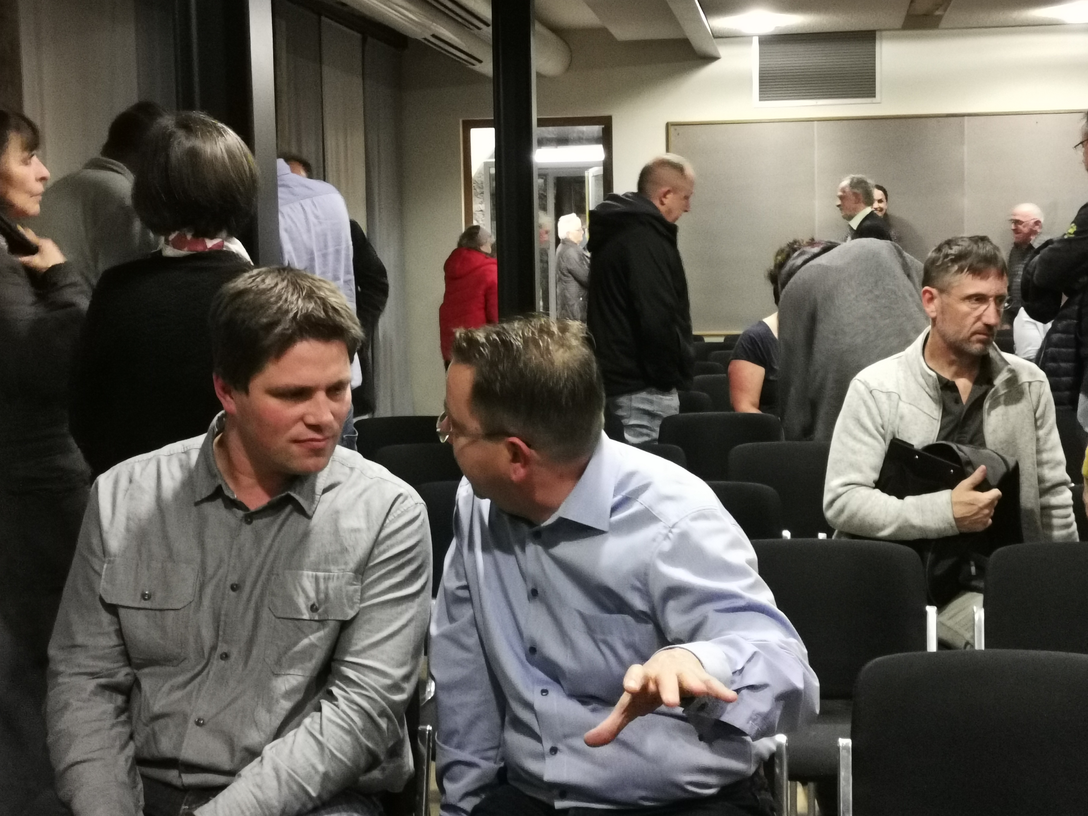 Während Wohneigentümer Wied (links) eine Beruhigung der Straße befürwortet, sieht Raumgestalter Frank (rechts) eine Schwächung des Gewerbes. Fotos durften auf Genehmigung von Bürgermeister Bauer erst am Ende der Veranstaltung gemacht werden. Foto: GSCHWÄTZ
