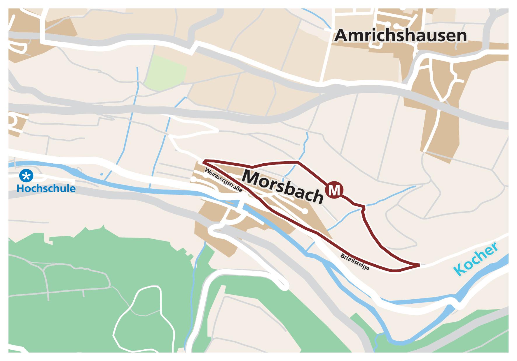 „Der Weg am Südhang in Morsbach nördlich des Kochers ist seit vielen Jahren sehr beliebt“, so Ortsvorsteher Carsten Zeller. „Man trifft sich dort und mittlerweile auch immer mehr Ortsfremde.“ Die im Frühjahr angebrachten Schilder machen es nun auch auswärtigen Spaziergängern und Wanderern leicht, die ausgewählte und schönste Rundwanderroute gut zu erkennen.