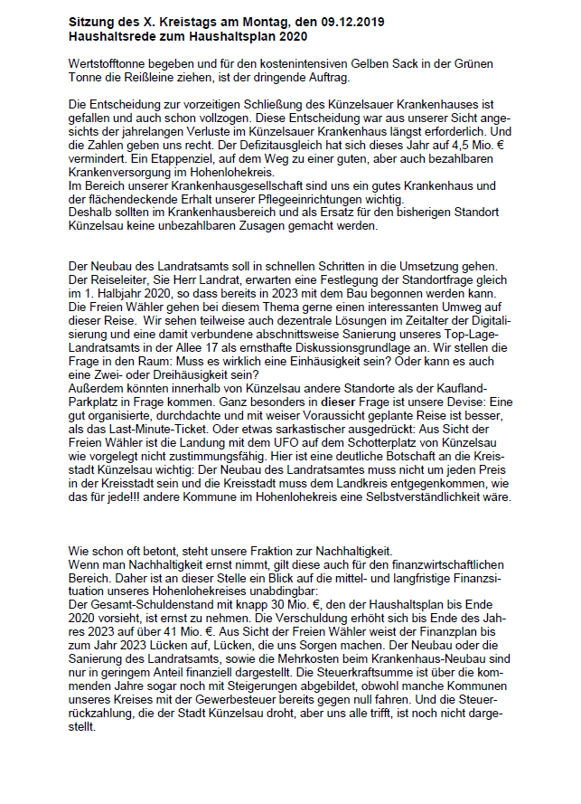 Aufgrund der Beteuerungen bezüglich des Krankenhauses äußert Boris d’Angelo Skepsis „gegenüber dem, was vom Kreis kommt“. Letztlich, sagt er aber, „gibts für Künzelsau gar keine andere Wahl, als zuzustimmen“. Er sieht ansonsten die Gefahr, dass man das Landratsamt verlieren könnte.