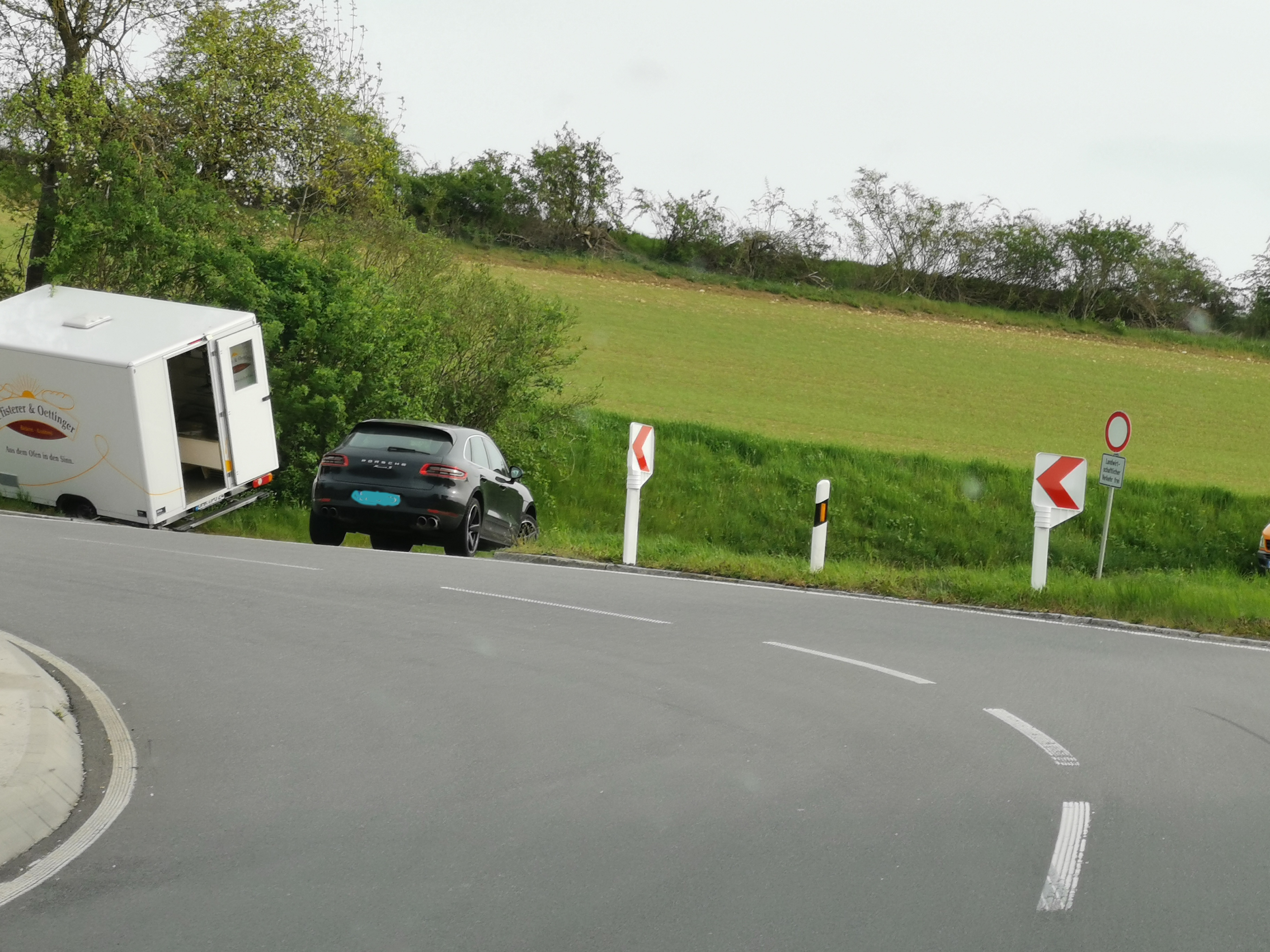 Zwischen Belsenberg und Stachenhausen: Bäckereiauto im Graben