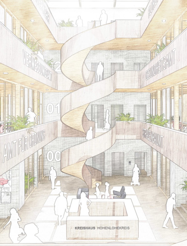 So stellt sich KUBUS 360 den öffentlichen Bereich des neuen Kreishauses vor. Foto: Entwurf KUBUS 360