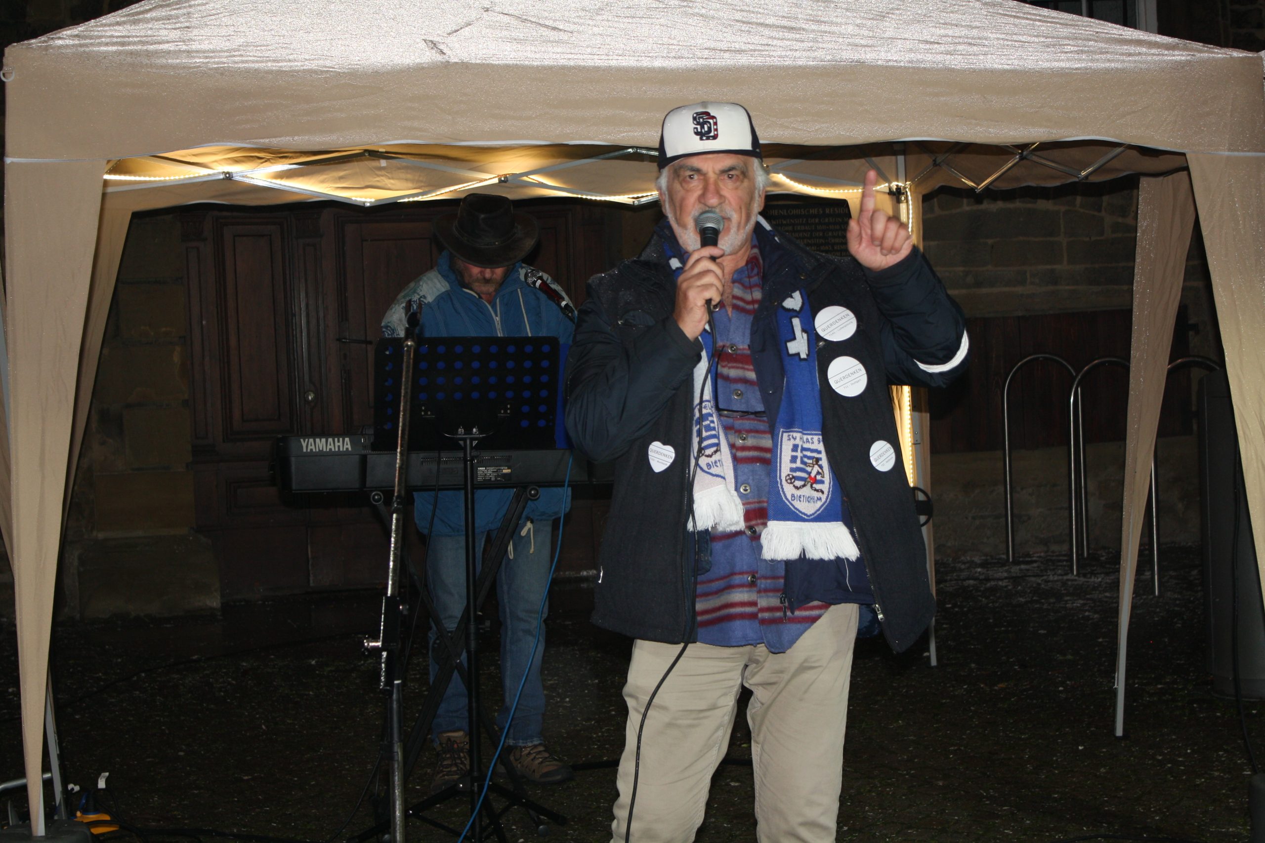 Zweiter klassischer Ansatz der Verschwörungstheoretiker: Der böse Staat arbeitet gegen das Volk. Bei Trump ist es der „Deep State“, gegen den jeder anzugehen hat, hier ist es die Landesregierung: Denn eine in böswilliger Absicht gegen die Bevölkerung handelnde Regierung rechtfertigt jede Aktion, so der nicht ausgesprochene, aber in den Zuhörern sicherlich getriggerte Argumentationsstrang.