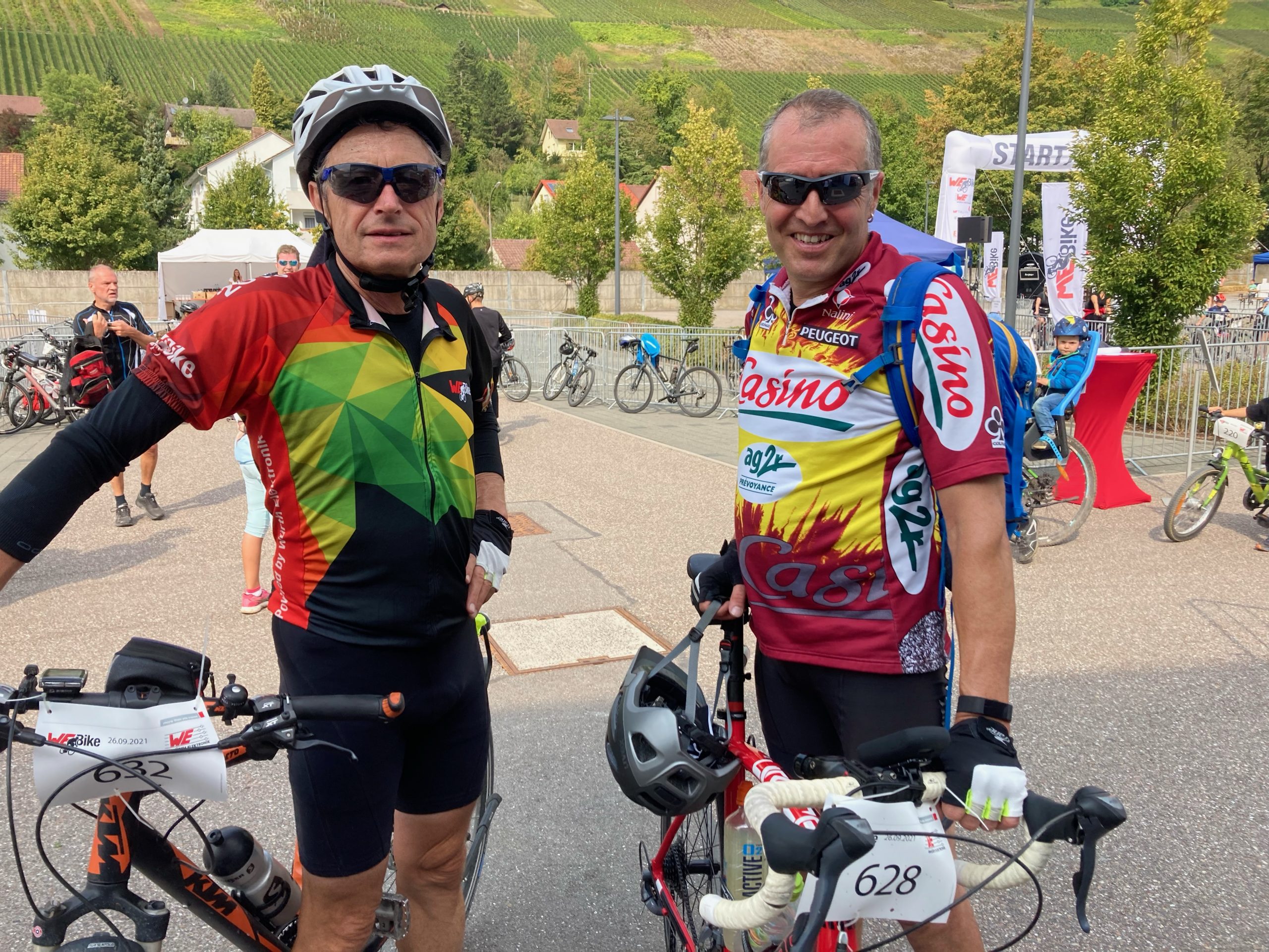 Immer dabei waren auch der 80-jährige Udo Hachtel und der 55-jährige Ralf Link. Drei Stunden waren die beiden auf der 80-Kilometer-Strecke unterwegs. „Es war eine sehr schöne Strecke und gutes Training für uns. Und das Wetter war ja auch bombastisch.“ Am besten fanden die zwei alten Hasen aber die Verpflegungsstände, welche sehr viel zu bieten hatten. Bedienen konnte man sich an belegten Brötchen, Brezeln, Müsliriegeln, Studentenfutter sowie frischem Obst und Getränken.