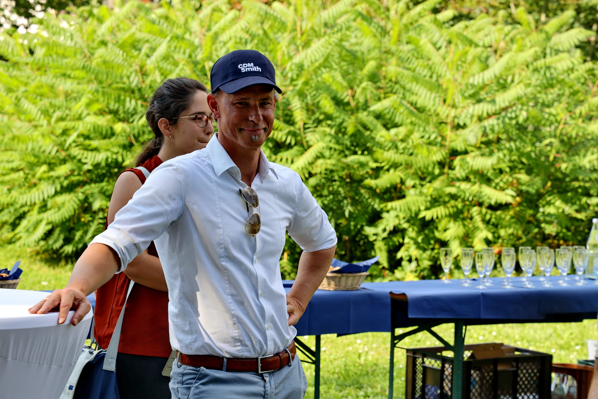 Dr.-Ing Alexander Krohs, Bereichsleiter Wasser beim Planungsbüro CDM Smith, erläutert die Hintergründe der Baumaßnahme: 2016 habe man eine Überrechnung der Wassermengen durchgeführt und festgestellt, dass Maßnahmen zur Mengensteuerung des sogenannten Mischwassers notwendig sind. Mischwasser nennt man die Mischung aus Abwasser und Regenwasser. Bei Starkregen kann es vorkommen, dass zuviel Mischwasser in die Kläranlage geleitet wird. Dies will man durch den Bau zweier Überlaufbecken erreichen, in denen das Mischwasser gesammelt und kontrolliert abgeleitet werden kann. Das größere Rückhaltebecken wird 400 m3 fassen können. Es wird in Form einer 80 Meter langen Röhre mit einem Durchmesser von 2,6m gebaut werden. „Das ist eine interessante Maßnahme, sowohl technisch als auch durch die Lage am Kocher“, schließt Krohs.