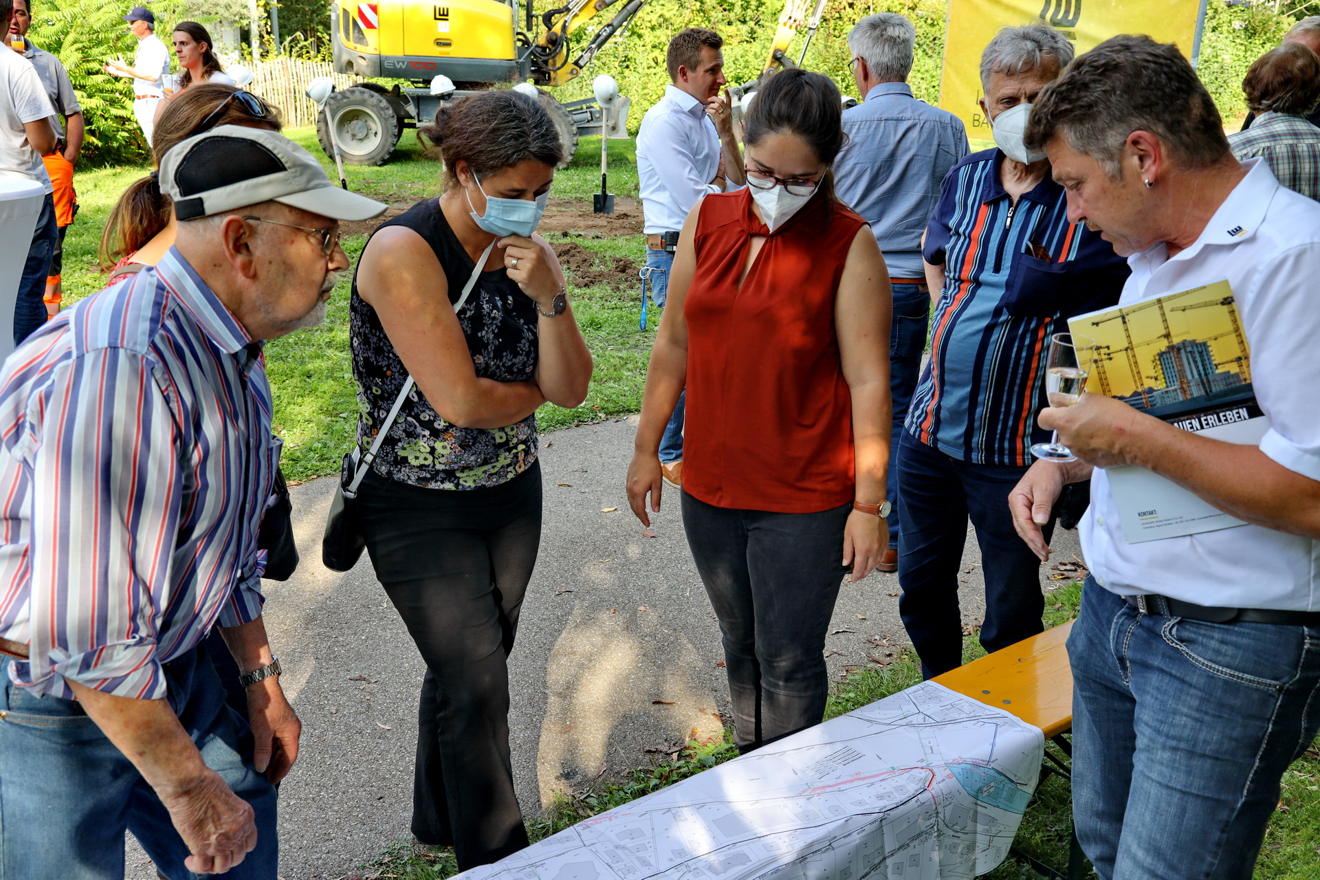 Diskussionsbedarf bei den Anliegern, rechts Uwe Breuninger von Leonhard Weiss. Foto: GSCHWÄTZ.
