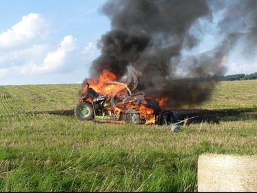 Landwirtschaftliches Fahrzeug geht in Flammen auf