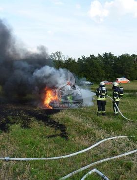 Rodachshof: Brand eines landwirtschaftlichen Fahrzeuges. Foto: Feuerwehr Künzelsau