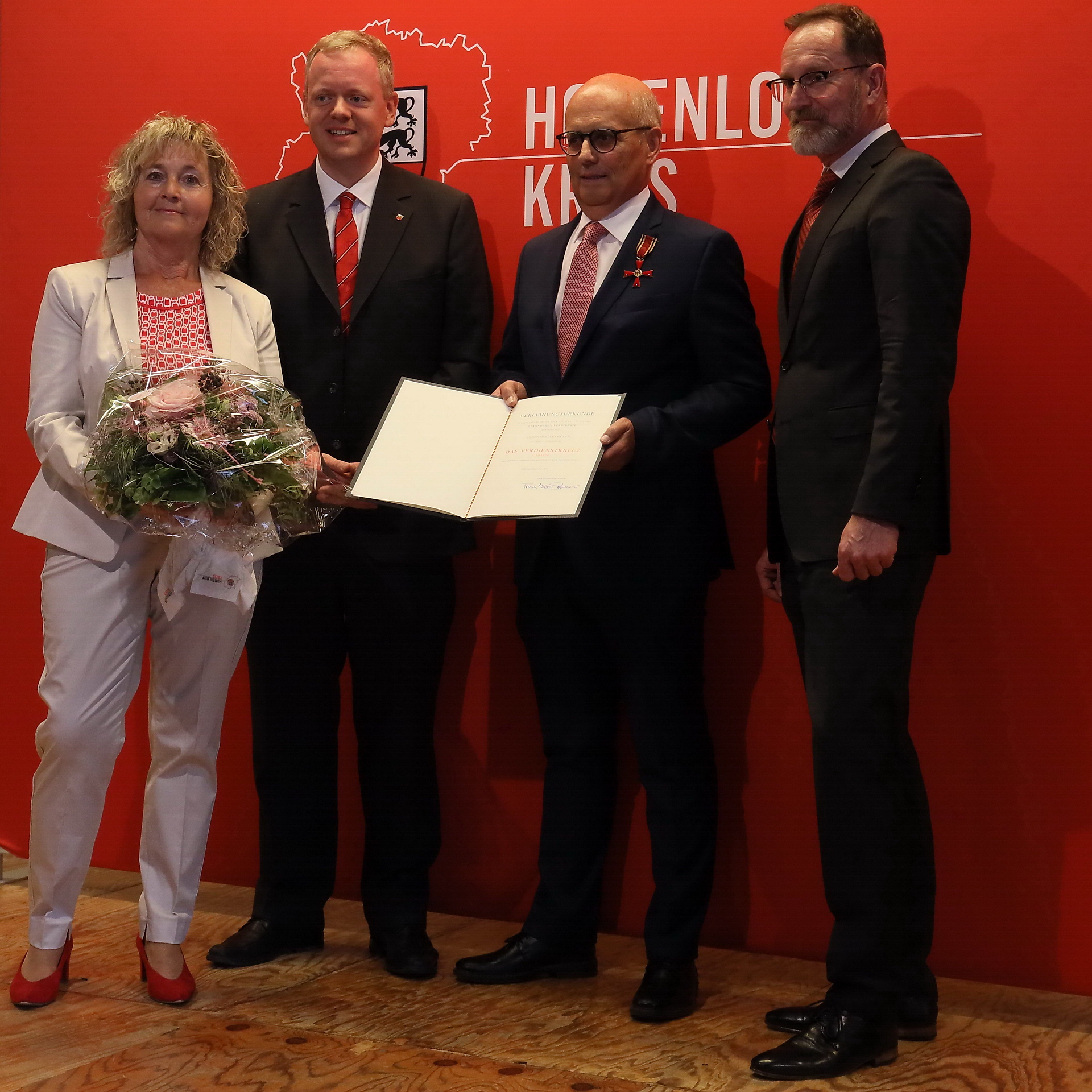 Gökers Frau Irene, Landrath Dr. Neth, Herbert Göker und Bürgermeister Joachim Scholz. Foto: GSCHWÄTZ