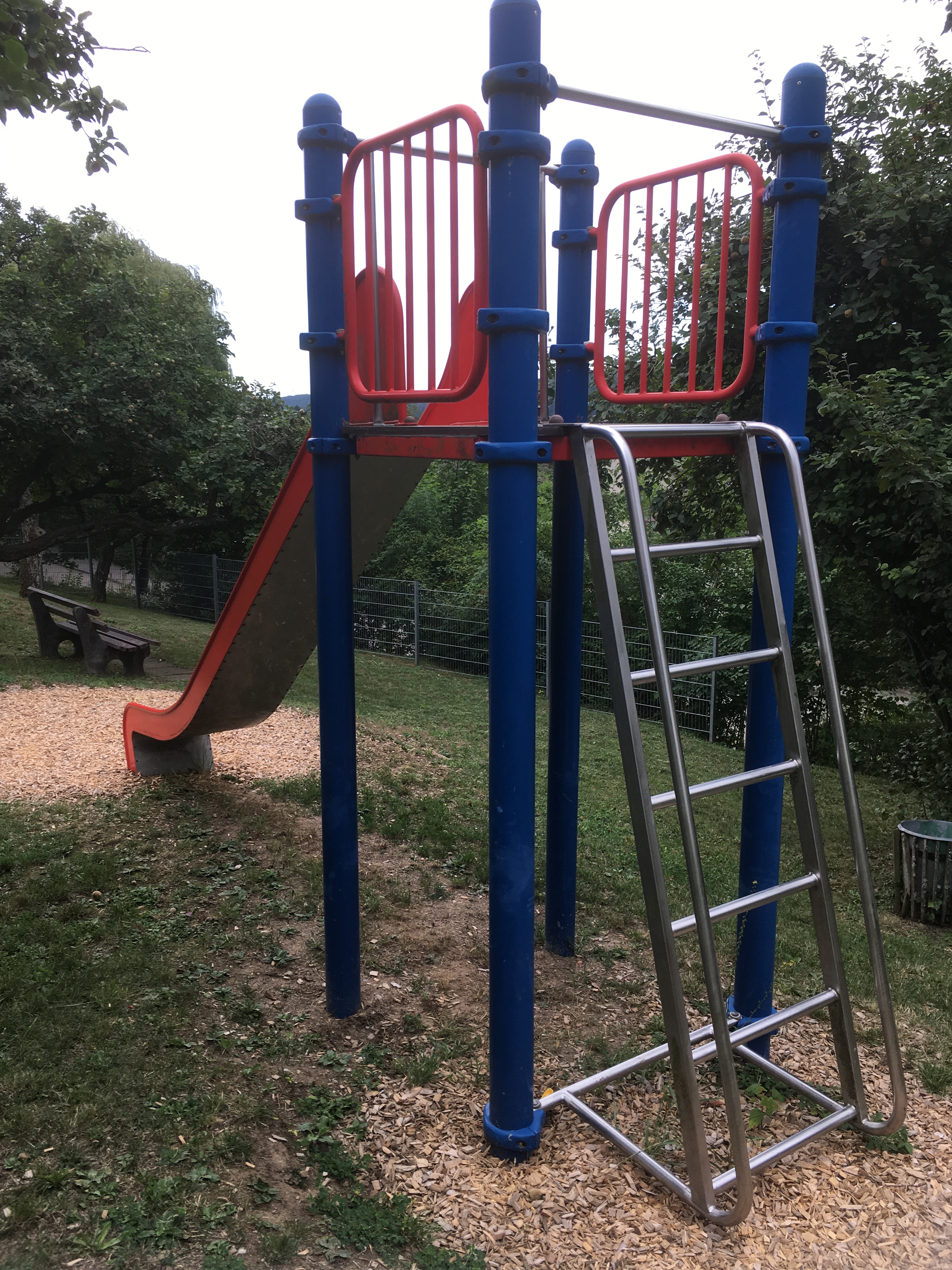 Das einzige, was dem Spielplatz bisher fehlt, sind spielende Kinder. Die können den Spielplatz bis heute nur mit sehnsuchtsvollen Augen betrachten, aber nicht benutzen: „Es steht lediglich die Anbringung der Geländer und Zaunanlage aus“, informiert Helen Bühler, Leiterin des Fachbereichs Stadtmarketing/Kultur/Presse. Da der Spielplatz an eine Wiese grenzt, die bis zum Kocherufer geht, ist eine Abgrenzung notwendig. Die langen Lieferzeiten seien schuld, dass Geländer und Zäune noch nicht angebracht werden können, sagt Bühler. Umlaufende Gerüchte, dass bei der Planung oder dem Aufbau etwas schiefgelaufen sei, dementiert sie: „Bei der Errichtung des Spielplatzes wurden alle Normen eingehalten. Eine Nachbesserung war nicht erforderlich.“