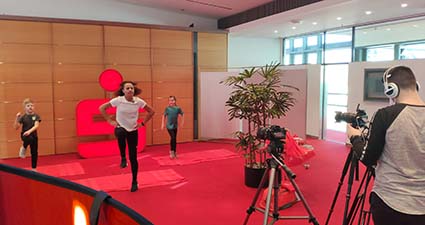 Dreh zum Sport-Video mit Laura Raquel Müller, Melissa und Ben. Foto: Sparkasse Hohenlohekreis