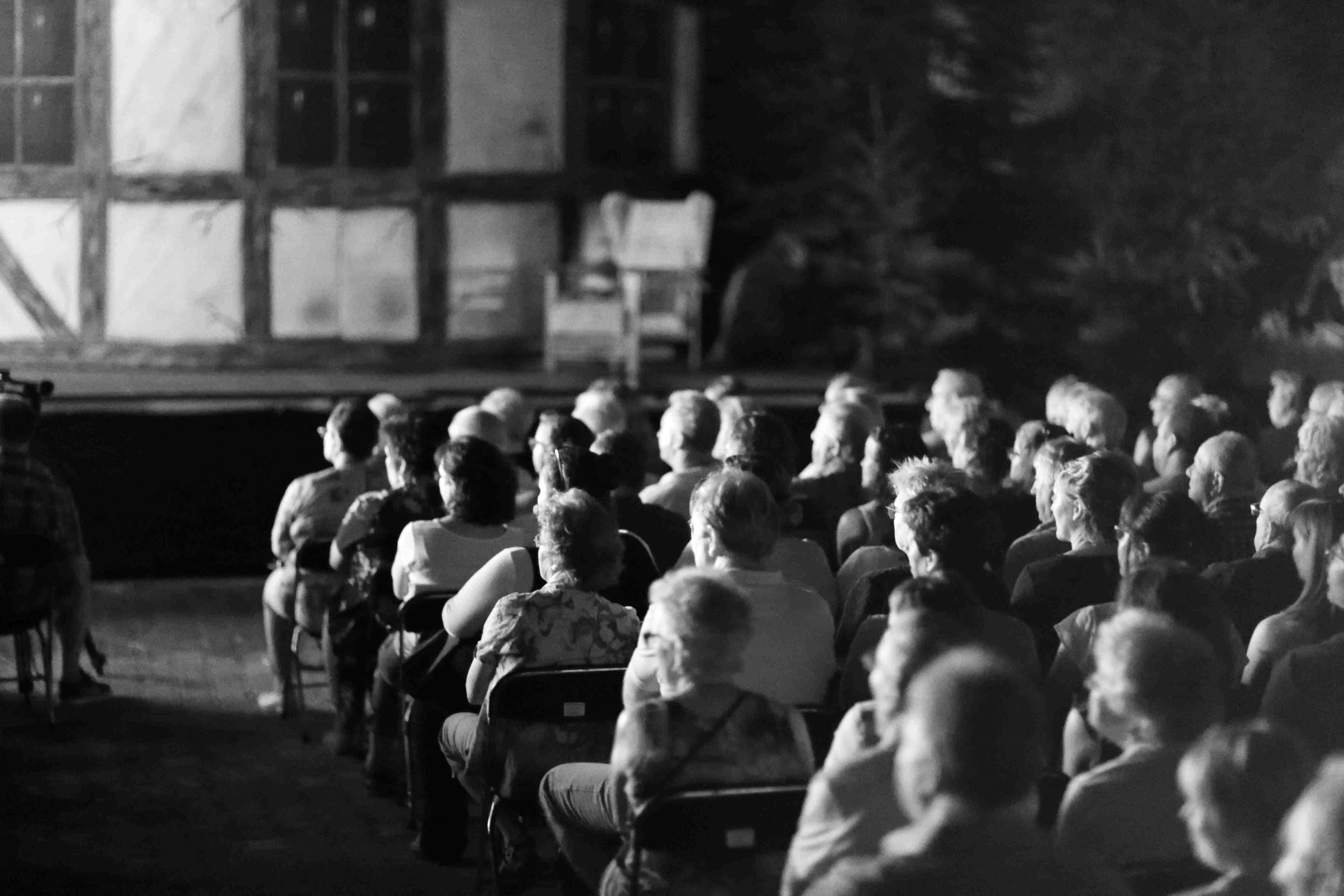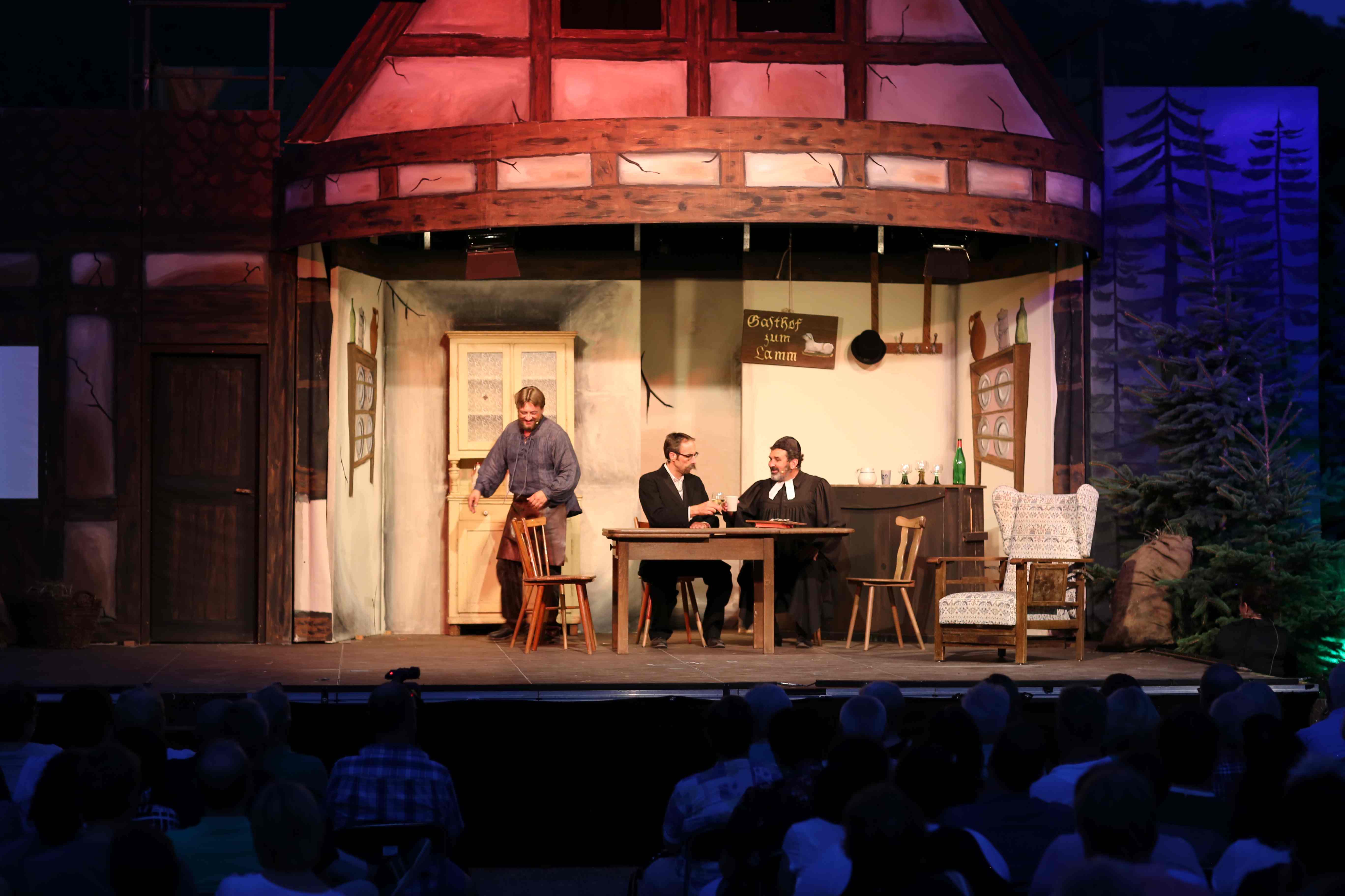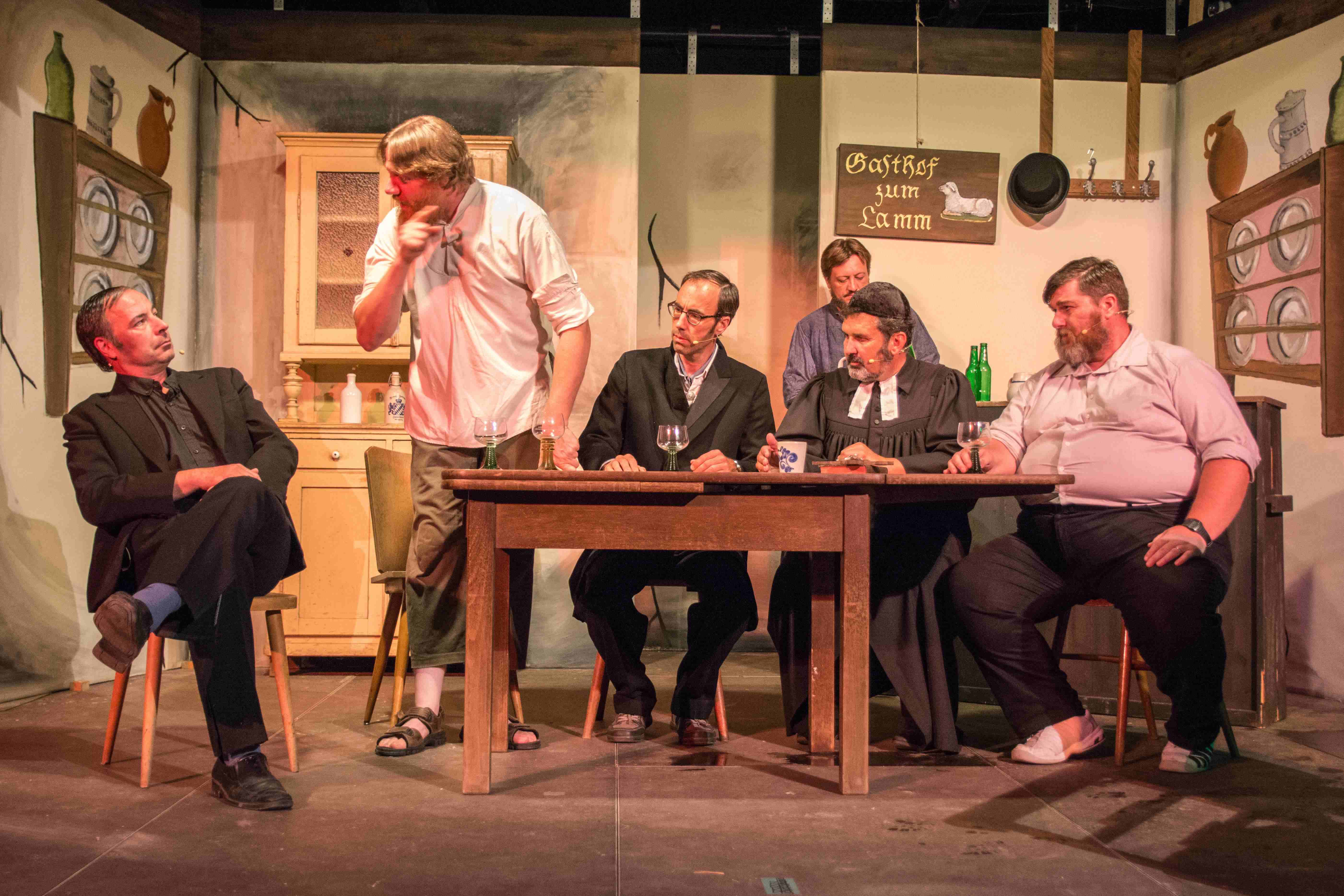 Man kann kaum glauben, dass Sophie Käfer, die Louise spielt, in diesem Stück ihr Bühnendebüt feiert. Das schauspielerische Talent, sowohl als kokettes Hausmädchen, als auch als vermeintliche amour fou am Ende – Sophie schafft es, alles absolut überzeugend und mit höchstem Witz darzustellen. Ihr Bruder Niklas derweil begleitet die Damen bei ihren drei gelungenen musikalisch Einlagen mit seinem Keyboard und schreibt derweil ebenfalls an einem Theaterstück, das eventuell im nächsten Jahr aufführungsreif sein wird. Sein Bruder ist für die Maske der Schauspieler zuständig. Im Publikum sitzt die Mutter der drei, Elke Käfer, und sieht zum ersten Mal das Stück, das mittlerweile schon diverse Male an verschiedenen Orten aufgeführt wurde. In Krautheim nun das letzte Mal. Sie ist stolz auf ihre Kinder, aber auch Niklas betont, dass ihre Mutter ihnen immer den Rücken bei allem gestärkt habe: „Sie ist unser Organisationstalent, unser Personal Coach, unsere Managerin. Jeder könnte froh sein, so eine Mutter zu haben.“