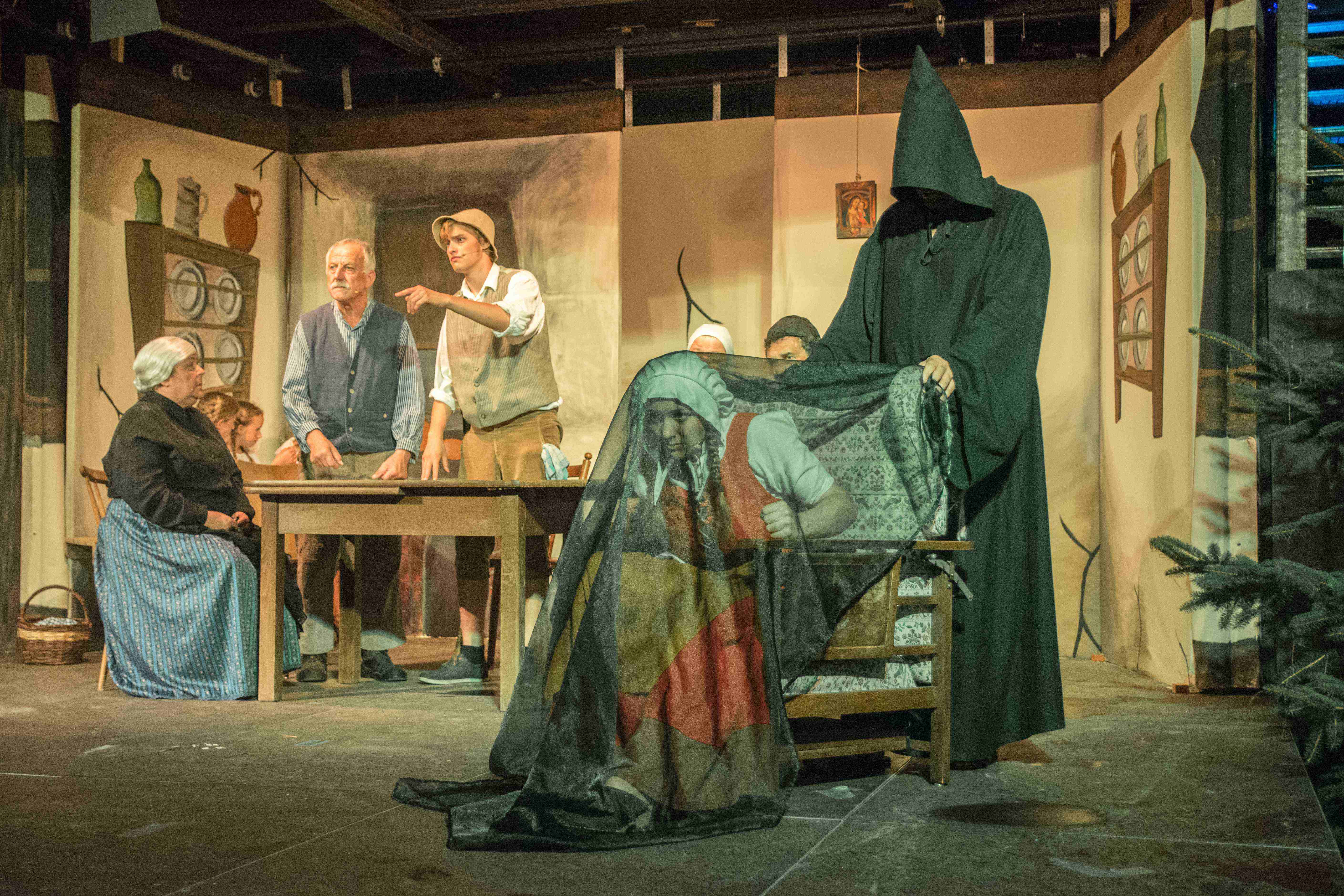 Die Besucher:innen sind dabei hautnah dran am Ermittlungsgeschehen in dieser, wie Regisseurin Monika Schumann es nennt, „Wohnzimmeratmosphäre“. Dazu muss man wissen: Der Pfarrsaal ist nicht allzu groß. Es gibt keine Bühne. Die Schauspielerinnen spielen bei den ganzen Irrungen und Wirrungen nur wenige Zentimeter von ihrem Publikum entfernt. Das Bühnenarrangement: Zwei Tische, ein Sofa und mehrere Stühle. Dadurch fühlt man sich als Beobachterin schon fast involviert und rätselt wie Sherlock Holmes bis zum Ende mit, wer es nun schlussendlich war. Aber man leidet auch mit, wenn etwa die böse Grandma trocken zu der armen Deborah sagt: „Nimm doch mal ein paar von deinen süßen kleinen Pillen.“ Oder wenn sich die Frauen gegenseitig im wahrsten Sinne an die Gurgel gehen. Aber die stillen Gewässer sind tief, das merkt man spätestens dann, wenn die liebe Emma süffisant anmerkt: „Louise ist ein Luder mit dem Ziel, mit dem Hausherrn zu schlafen.“