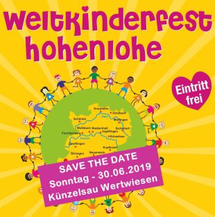 Das Weltkinderfest Hohenlohe feiert Jubiläum. Bereits zum zehnten Mal können sich kleine und große, junge und junggebliebende Einwohner des Hohenlohekreises auf ein buntes Fest freuen. Das Weltkinderfest findet am Sonntag, den 30. Juni 2019, von 11.30 bis 17 Uhr auf den Künzelsauer Wertwiesen statt.