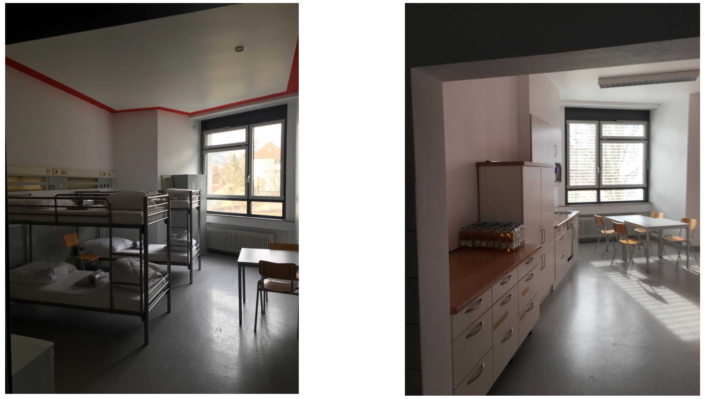 Die Zimmer und Gemeinschaftsräume im ehemaligen Krankenhaus sind pragmatisch ausgestattet. Foto: LRA Hohenlohekreis