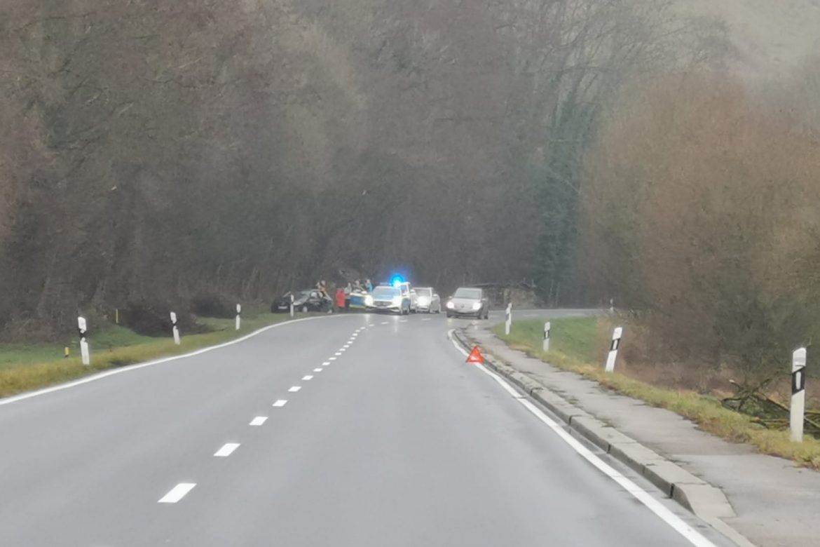 Am Samstag, den 02. März 2019, gegen 10 Uhr, ereignete sich zwischen Weißbach und Forchtenberg ein Unfall mit zwei Fahrzeugen. Die Fahrzeuge sind womöglich miteinander kollidiert. Der Ford Mustang liegt unten am Kocher und der VW Golf am Straßenrand.
