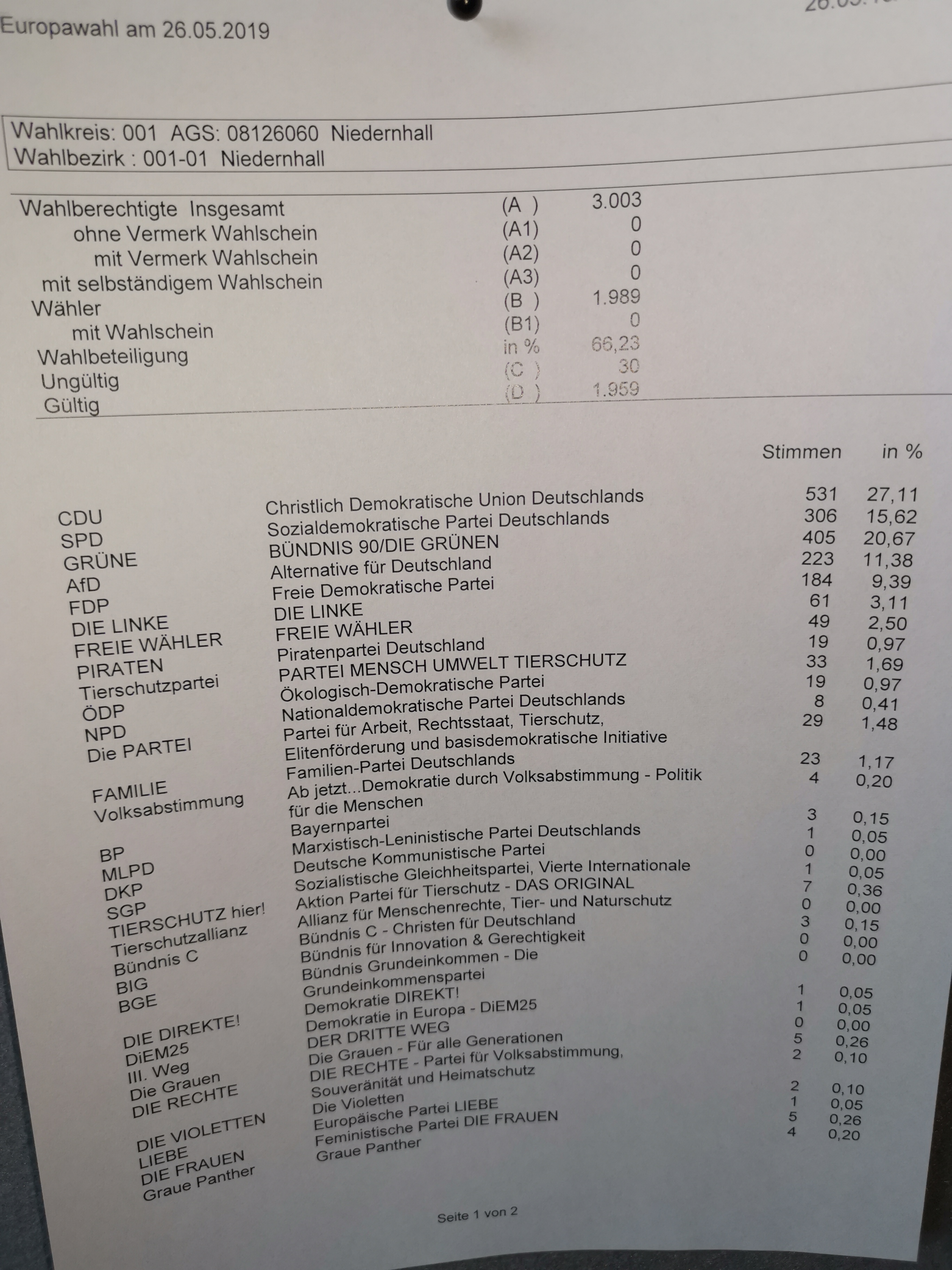 Niedernhall Wahlergebnisse Europawahl: