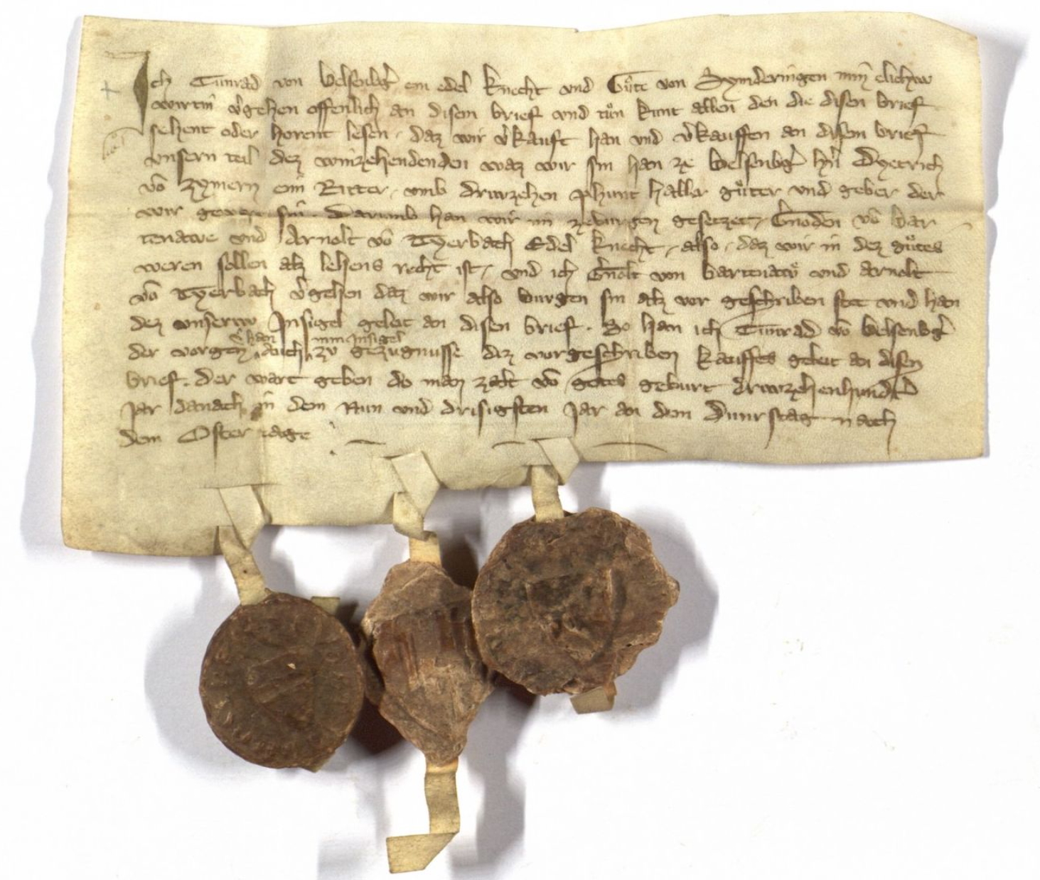 Urkunde über den Verkauf von Belsenberger Wein aus dem Jahr 1339. Quelle: Landesarchiv Baden-Württemberg