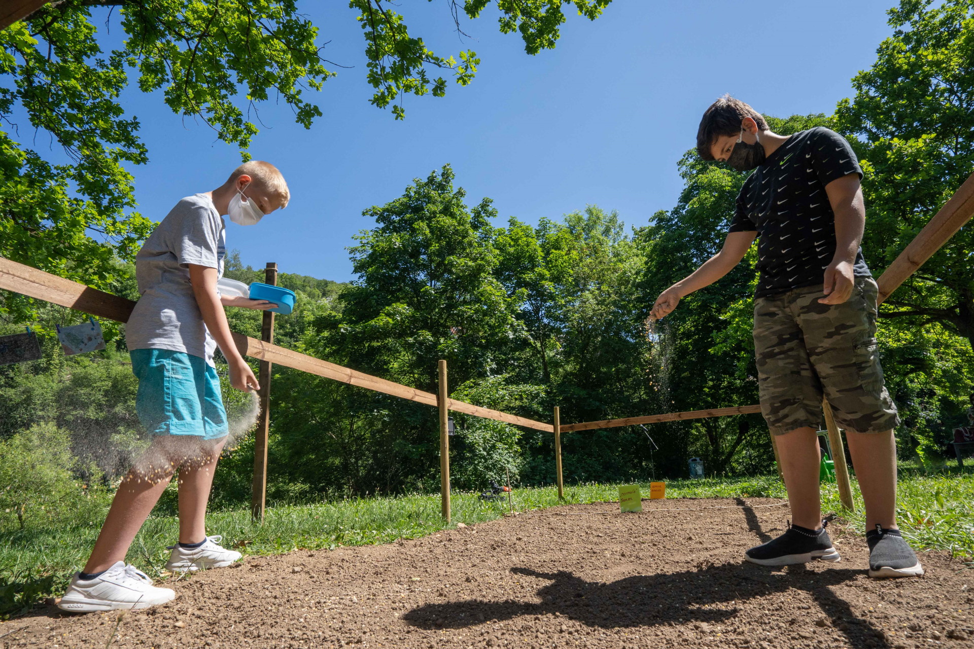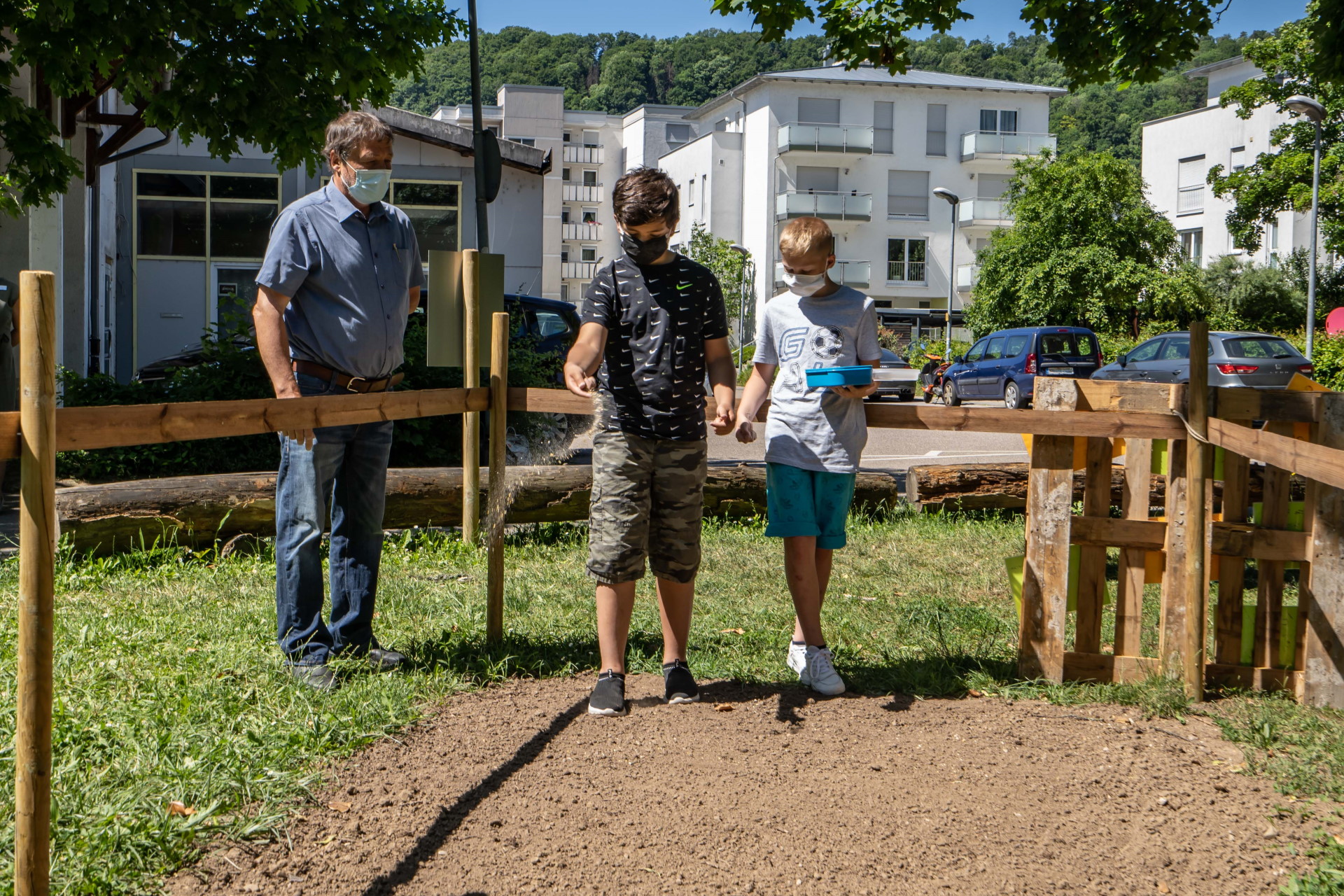 Eigentlich ist es etwas zu spät und zu warm für die Aussaat. Aber das Projekt sollte starten, wenn alle Schülerinnen und Schüler mitmachen können. Weil die Infektionszahlen erfreulicherweise gesunken sind, ist das jetzt im Präsenzunterricht mit den kompletten Klassen möglich. Mit Tipps vom Experten Ernst Rieger kommen die Samen in die Erde. „Jetzt braucht Ihr ganz viel Geduld und müsst beobachten – immer beobachten. Am besten Ihr sagt den Pflanzen gute Nacht und guten Morgen.“ Jochen Lutz, der stellvertretende Leiter des städtischen Bauhofes, wird gemeinsam mit den Kindern die Beete im Auge behalten und bei Bedarf mit seinem Team auch gießen.