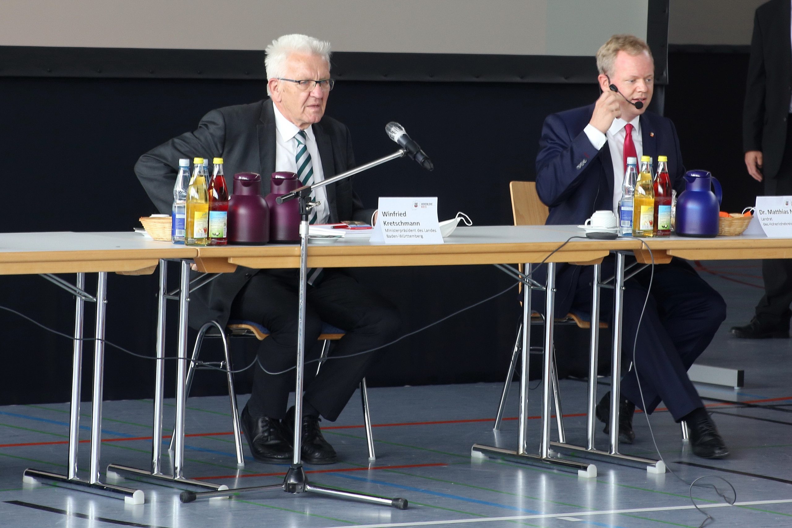 Kretschmann geht in seiner Replik darauf ein und lobt insbesondere den Erfolg des föderalen Systems, weil die unterschiedlichen Ebenen echte Kompetenzen haben. Auch habe man europäisches Zusammenleben gezeigt.