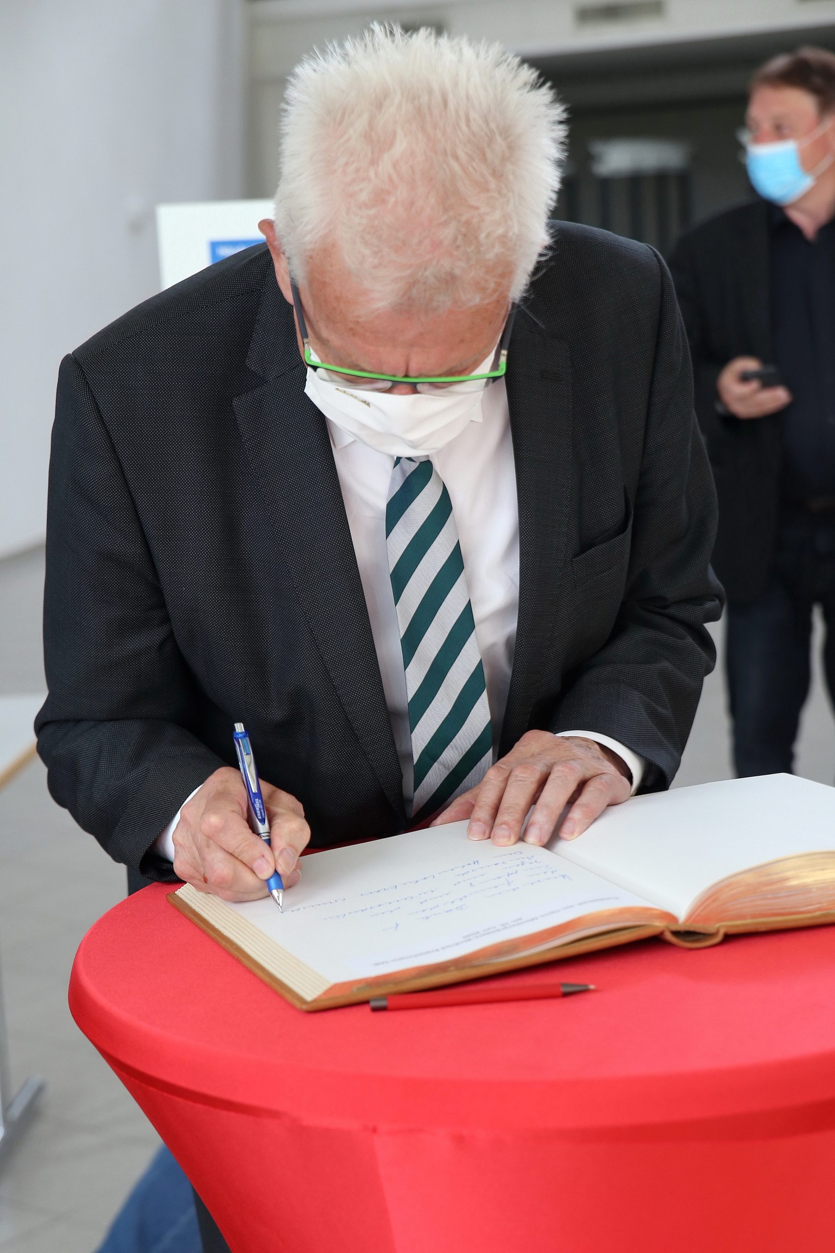 Nach dem Auftakt in der Kupferzeller Carl-Julius-Weber-Halle besuchte der Ministerpräsident das Albert-Schweitzer-Kinderdorf in Waldenburg und die Firma Bürkert in Ingelfingen-Criesbach. Hier wurde er unter anderem von GSCHWÄTZ-Videoreporter Dr. Felix Kribus begleitet. Das Video hierzu folgt in Kürze.